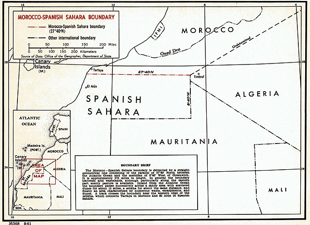 España, golpeada en su orgullo desde la pérdida de sus últimas posesiones coloniales tras la derrota frente a los Estados Unidos en 1898, recibió como premio consuelo algunos territorios marginales a resultas del reparto de África orquestado tras la Conferencia de Berlín (1884-1885), que tardó años en ocupar. Entre lo repartido, contó el África Occidental Española, más tarde denominado Sáhara Occidental, cuyas fronteras fueron trazadas caprichosamente por la metrópoli. Pese a ser una tierra desértica, pobre y escasamente poblada (con siquiera 80.000 habitantes en 1975), el sitio tuvo una posición estratégica como vía de conexión a las Canarias y a la otra colonia del sur, más distante, Guinea Ecuatorial. Hasta 1934, la presencia española en territorio del Sáhara fue testimonial y, recién en la de 1960 comenzó a alterar la vida del nómada.